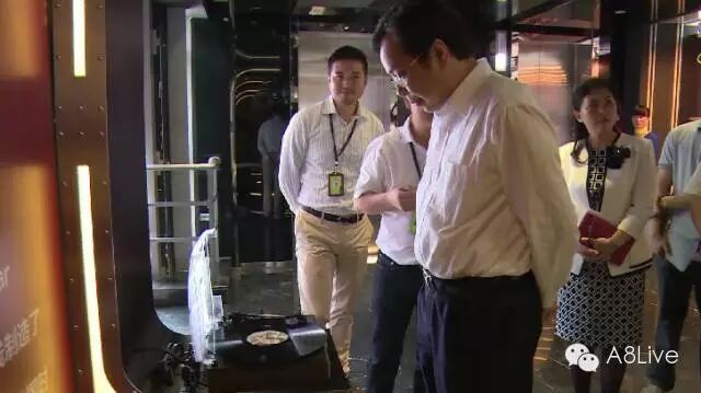 在A8音乐(A8新媒体集团)负责人的陪同下,李小甘一行现场参观了A8Live音乐现场的黑胶、卡带、CD以及数字音乐展品。